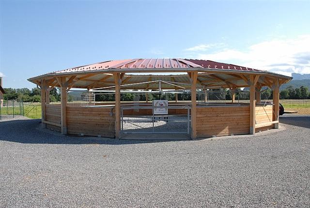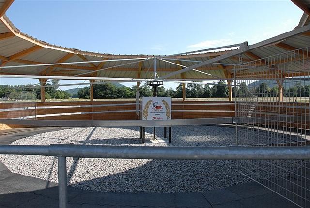 Die Pferde laufen auf einem harten Gummiboden,