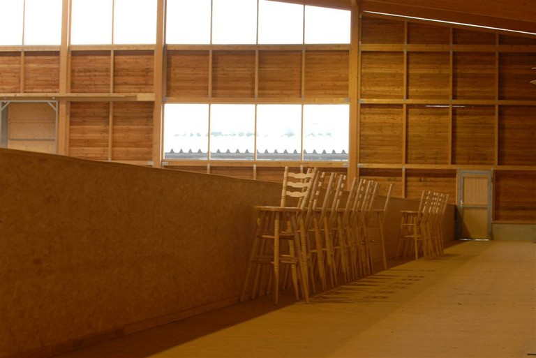 Mit der Zuschauertribüne an der Längsseite hat die Halle eine