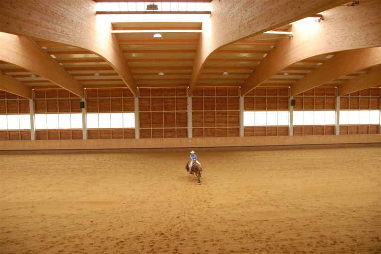 Der Hufschlag der Reithalle ist 30m / 60m.