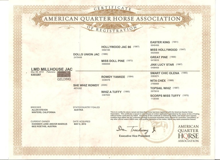 LMD MILLHOUSE JAC ist ein 2010 geborener Wallach aus SHE WHIZ ROWDY und DOLLS UNION JAC, dem Vater von TINSEL JAC.